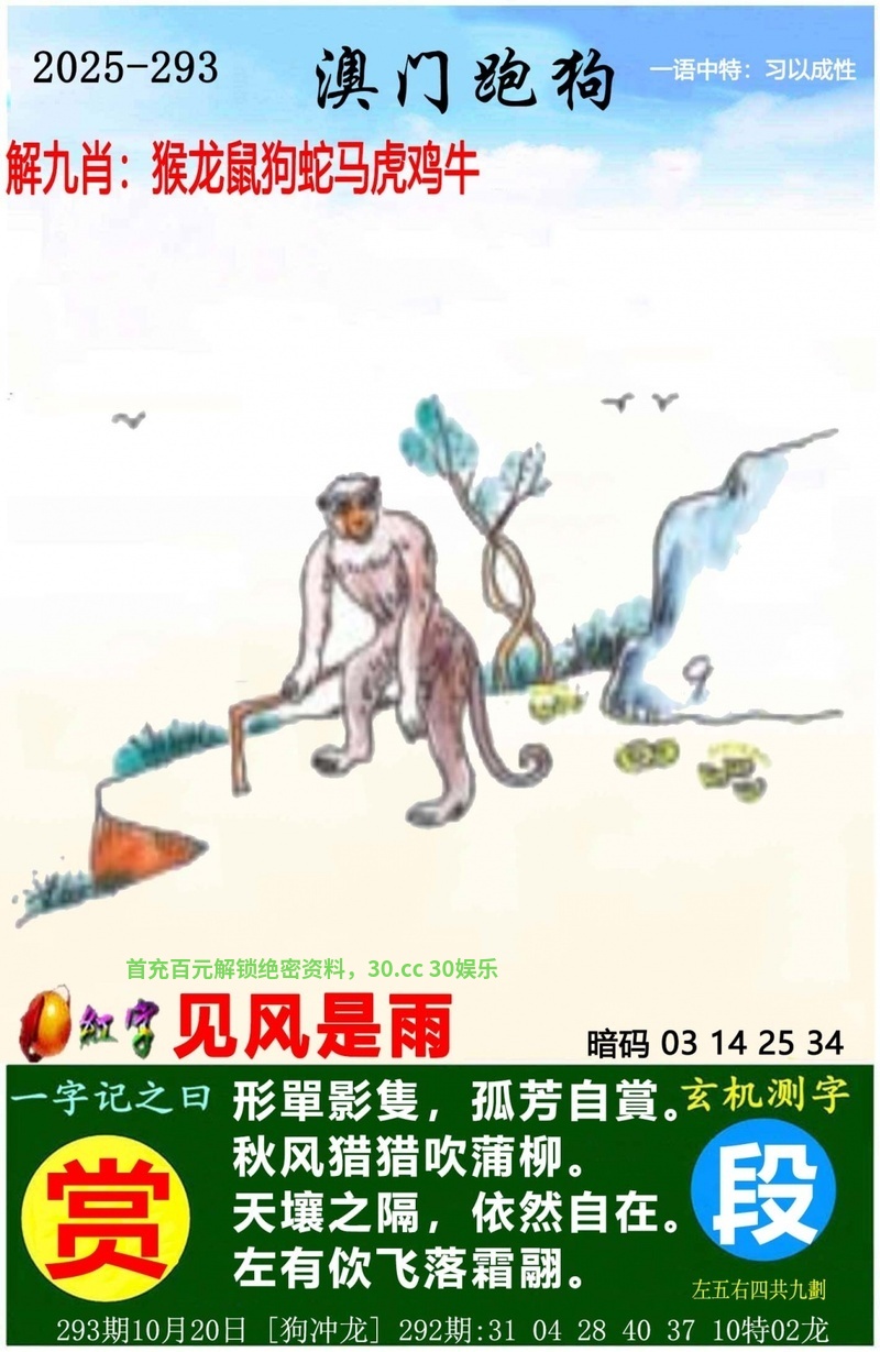 | 287期〖蛇龙猪鼠马兔猴羊狗〗开:猴34准 |